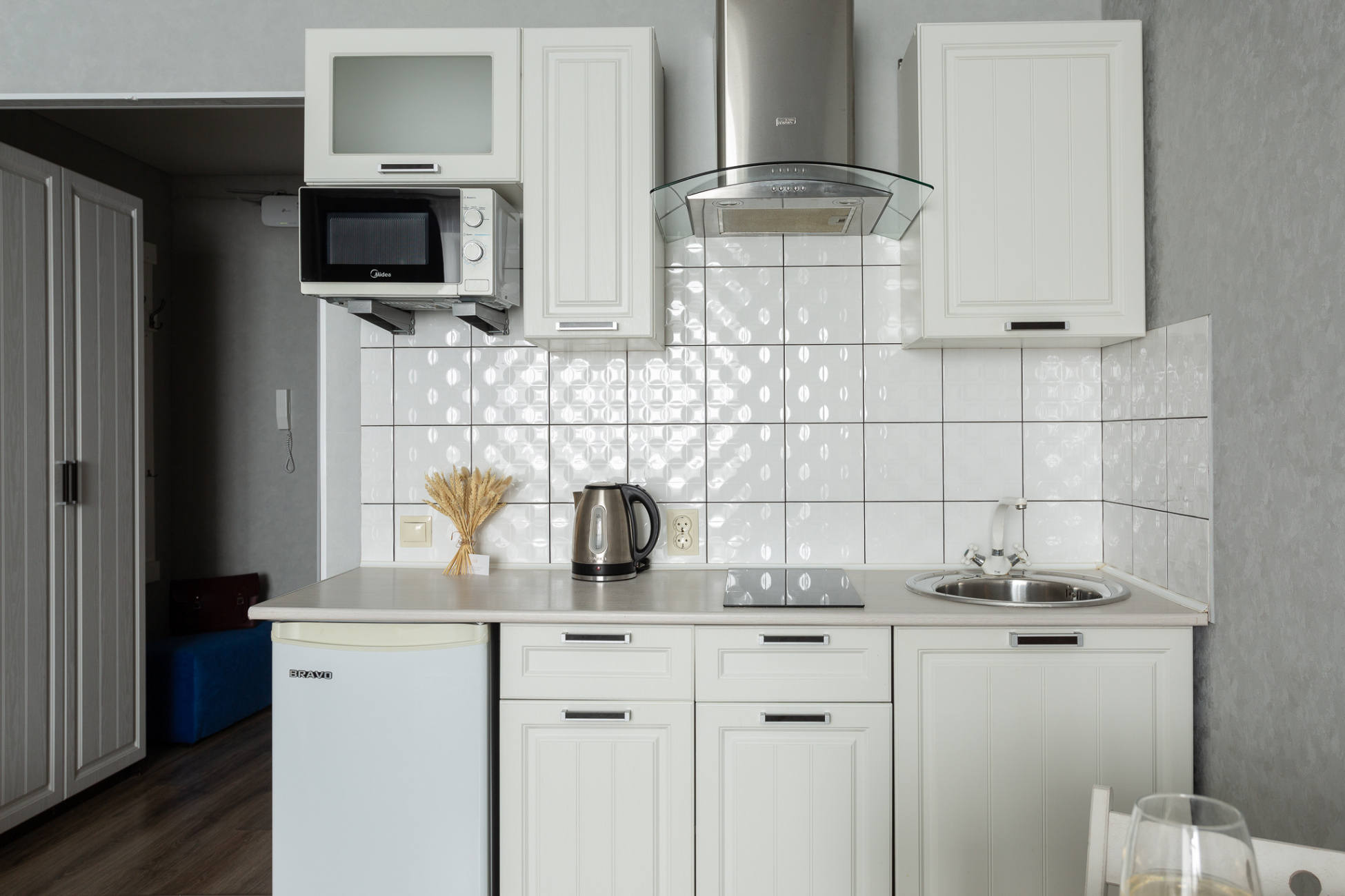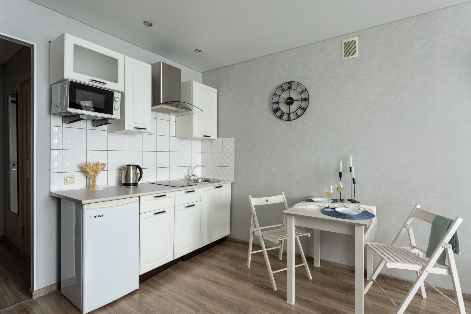 - В квартире набор столовых приборов и посуды на 2 персоны.